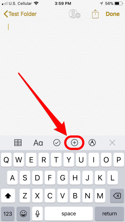 - 接下来,点击带有圆圈的加号以显示插入菜单。