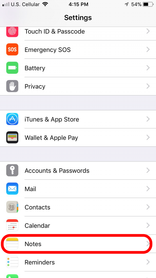- 首先,进入“设置”应用程序,然后向下滚动找到“注释”。