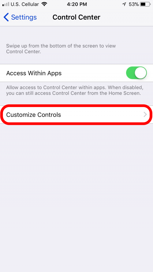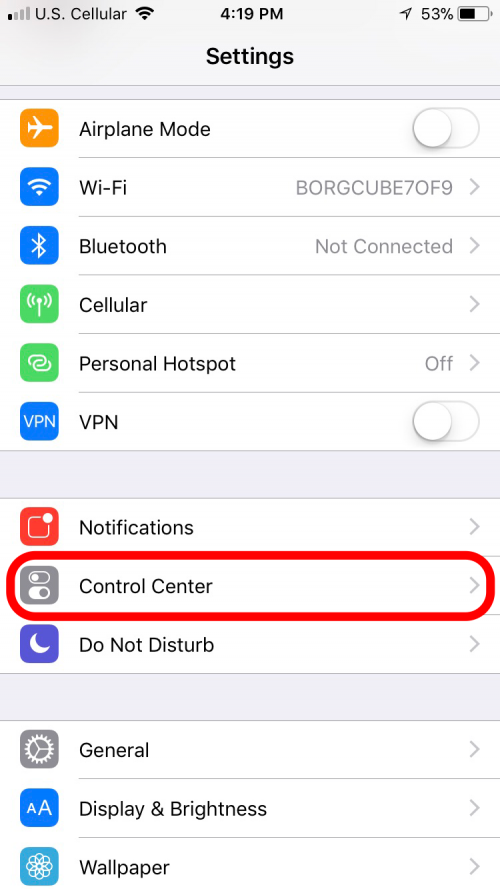 - 现在我们知道 Notes 的行为方式了,我们应该通过返回“设置”菜单并向上滚动找到“控制中心”来将其添加到“控制中心”。