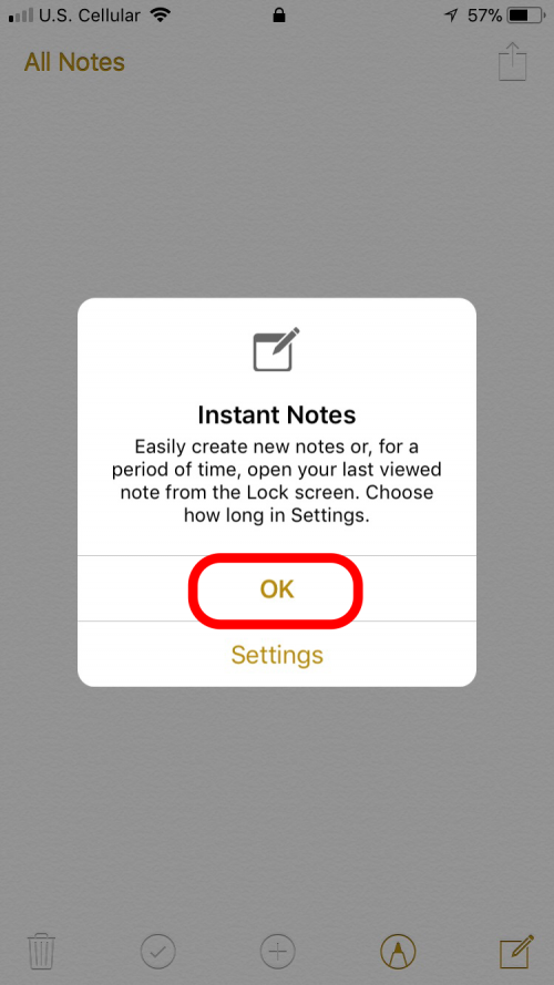 - 第一次从控制中心使用 Notes 时,会弹出一条消息,要求您调整设置。既然我们已经这样做了,我们只需点击“确定”即可。