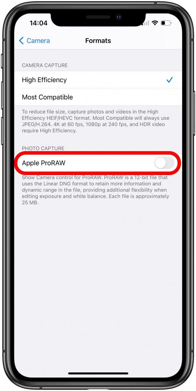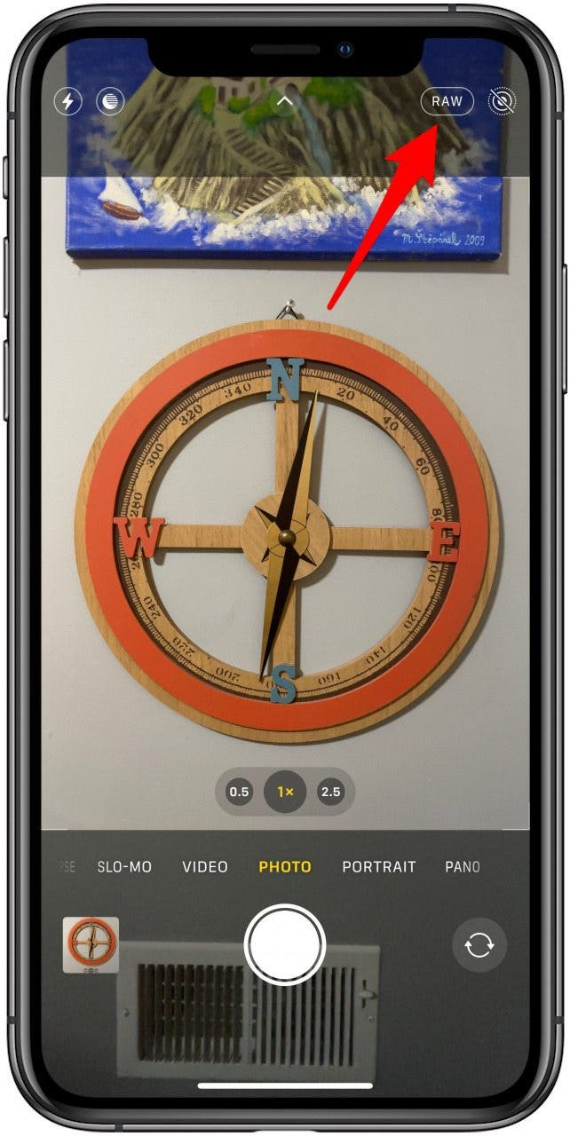 启用 ProRAW 后,您将在相机应用程序中看到 RAW 图标。您可以根据需要点击它来启用和禁用它。