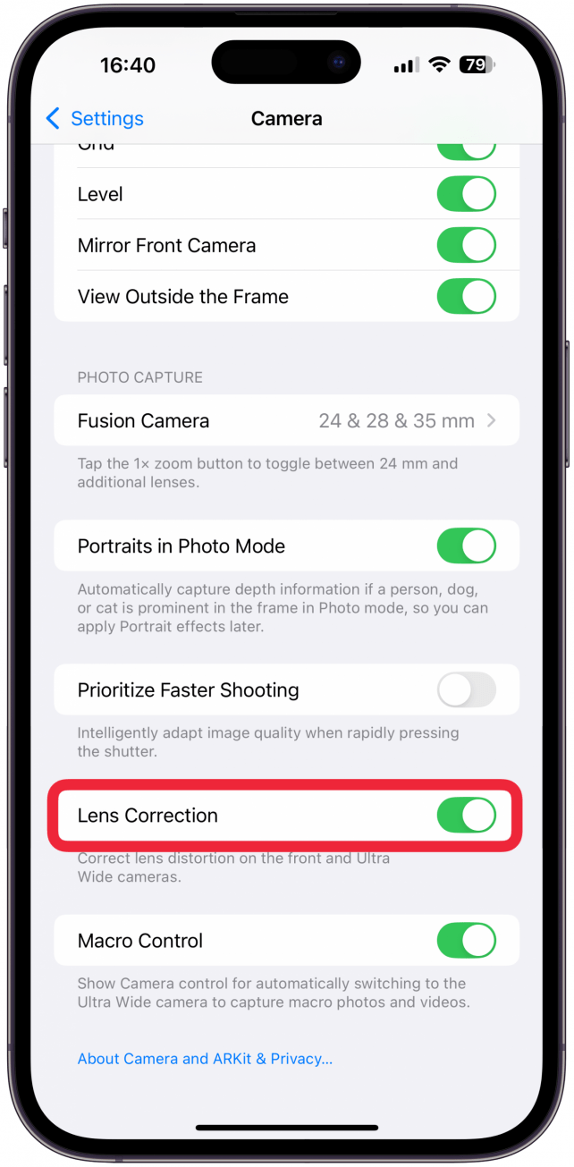 - 最后,镜头校正是使用人工智能来纠正“缩小”对照片造成的失真的东西。由于鱼眼效果,这种扭曲看起来像是模糊的,并且使照片的外边缘看起来很奇怪,因此一些用户更喜欢将其保持打开状态。其他用户注意到自动校正可能会导致模糊,因此他们将其关闭。我保留它,但我建议尝试两者,看看哪种最适合您。