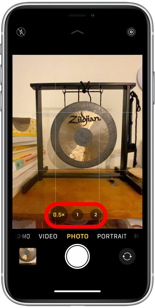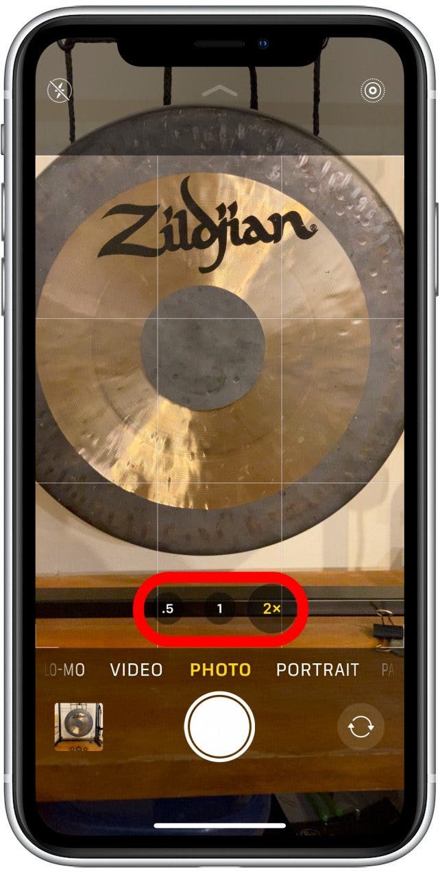 - 。在快门上方,您会看到一个水平缩放菜单。