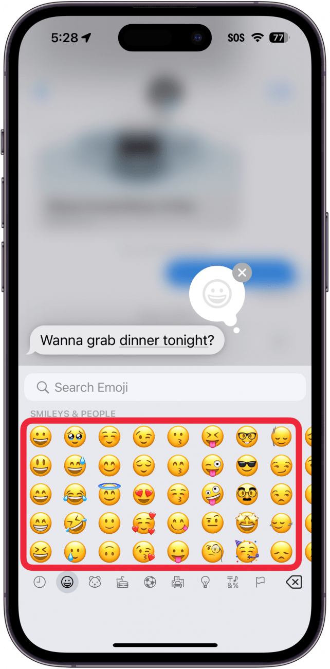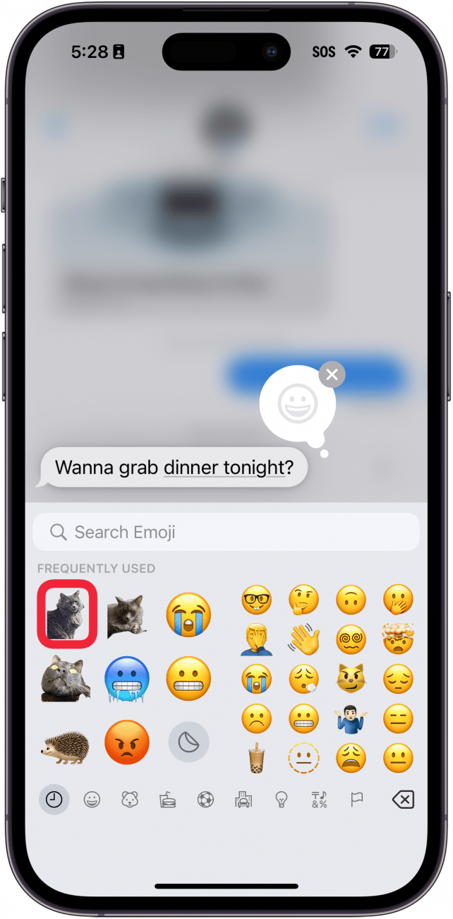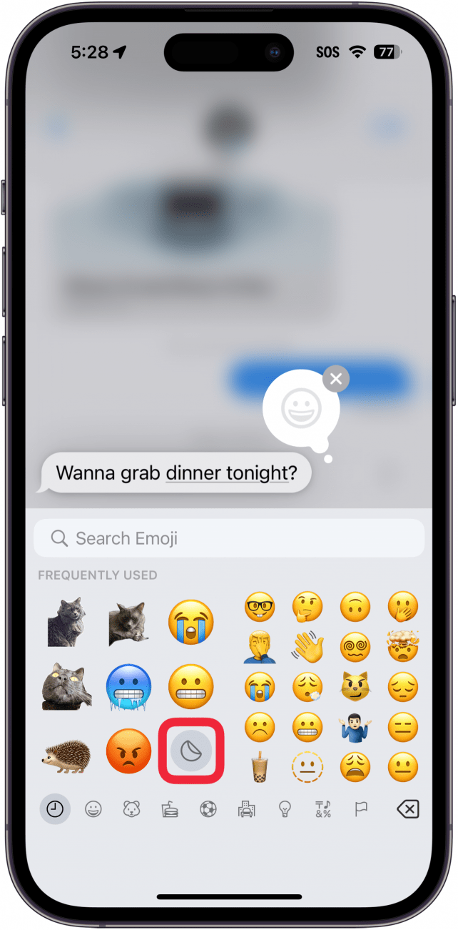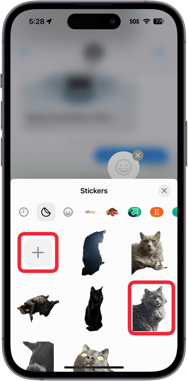 - 当您返回表情符号屏幕时,点击贴纸或选择其他表情符号。
