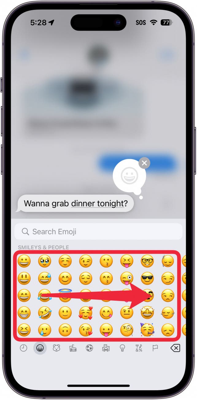 - 当点击返回菜单弹出时,您可以向左滑动以查看一些建议的表情符号。