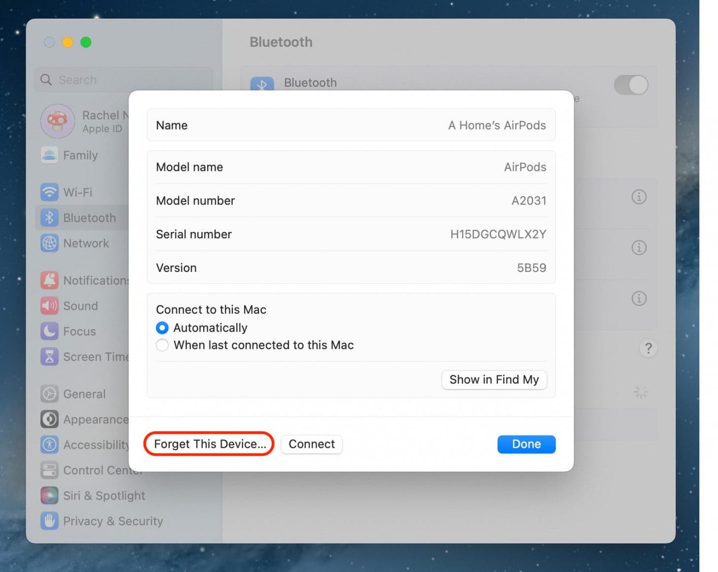 如果蓝牙仍然无法连接到您的 Mac,您可以尝试从 Mac 内存中删除该设备,然后重新连接。这个选项是我解决 iPhone 和汽车之间蓝牙问题的方法。