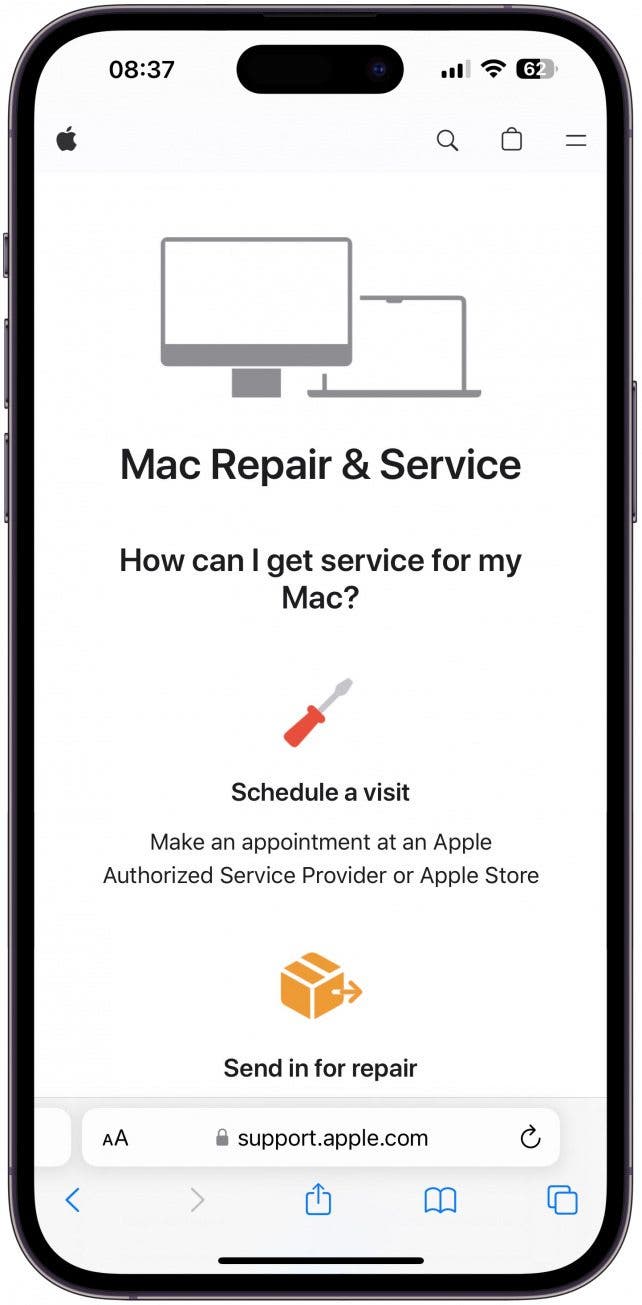 您可以在 iPhone 上轻松安排 MacBook 屏幕维修,或通过浏览器获得任何建议。我将向您展示如何在 iPhone 上执行此操作,但步骤在任何设备上都是类似的: