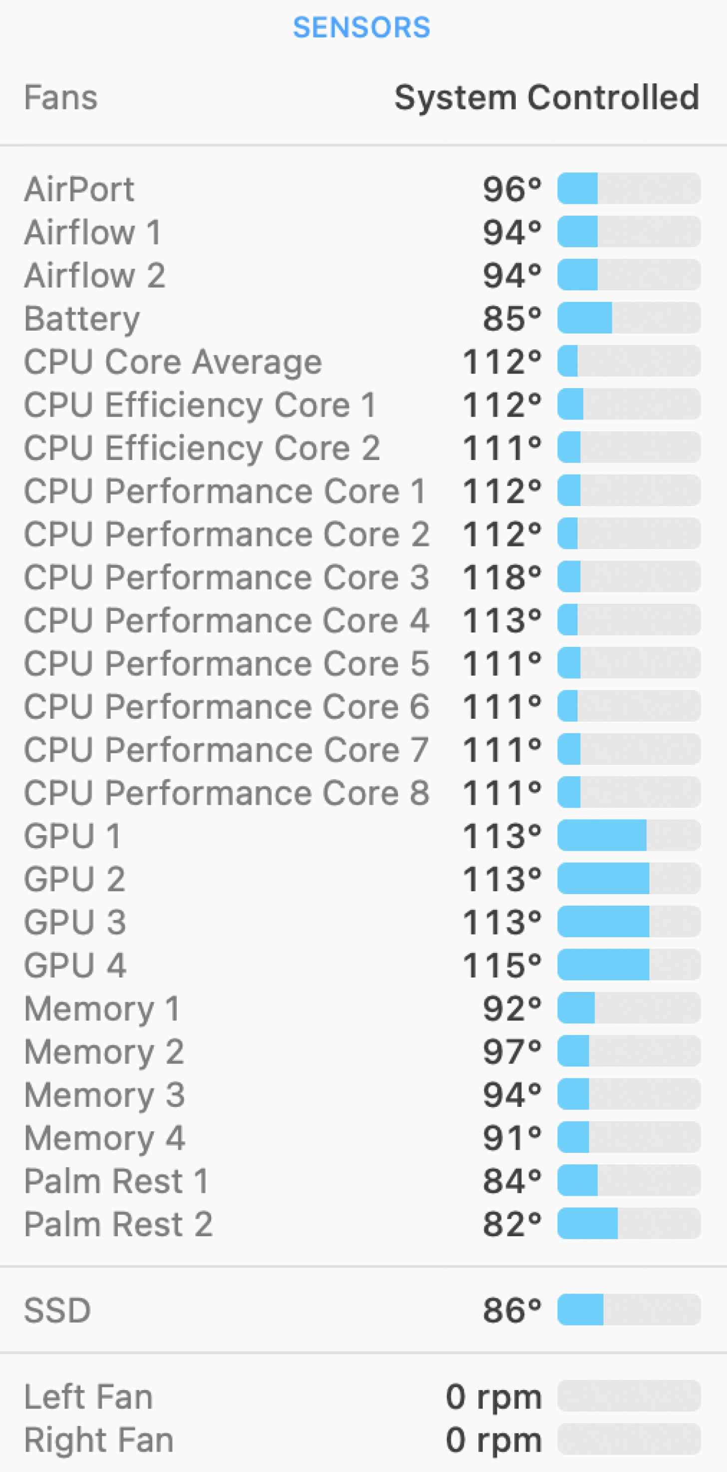 任何设备都容易发生过热,但有些因素可能会导致这种情况更容易发生。如果您生活在气候较温暖的地方,或者在不利于通风的表面(例如床)上使用 MacBook,您的设备更有可能过热。另外,MacBook 的风扇可能会出现故障,或者通风口可能会沾上灰尘,从而妨碍正常通风。最好将 MacBook 放在温度受控的房间、桌子或支架上,以使其通风,此外,您还应该定期检查通风口是否有任何碎片。