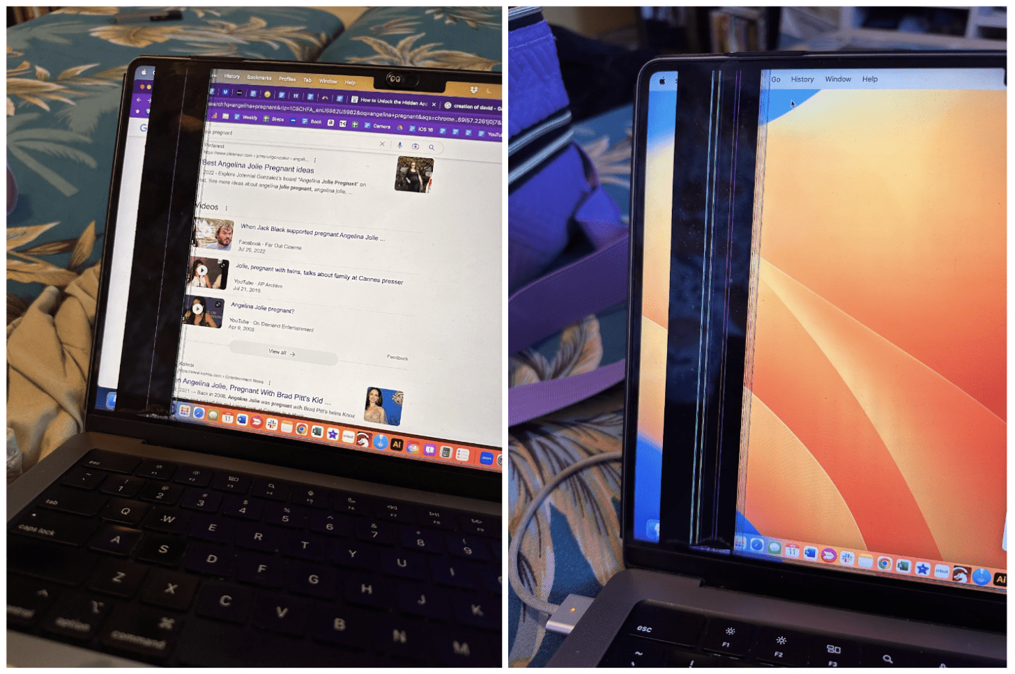 我不幸醒来发现我的 14 英寸 2021 MacBook Pro 上有垂直和水平的线条,我的第一个问题是,“为什么我的电脑屏幕上有线条?”我的笔记本电脑一如既往地放在我的桌子上,尽管我在一个多月前把它摔在地上,但似乎没有损坏。几周后,我醒来时看到了彩色的线条,如下图所示。