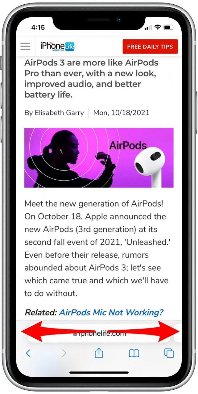 - 现在,您可以在地址栏上向左或向右滑动,以按照设置的顺序在选项卡之间移动。