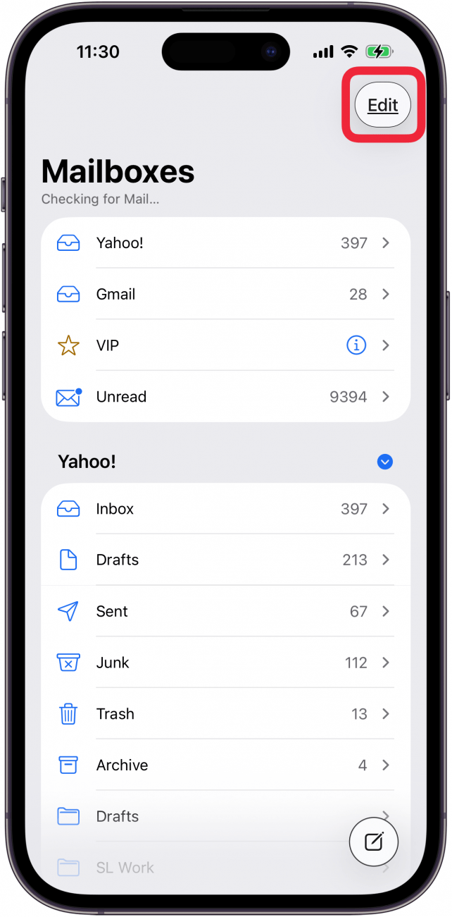 - 如果您位于特定收件箱中,请转至邮箱通过退出当前所在的收件箱(通常通过点击左上角的插入符号)。