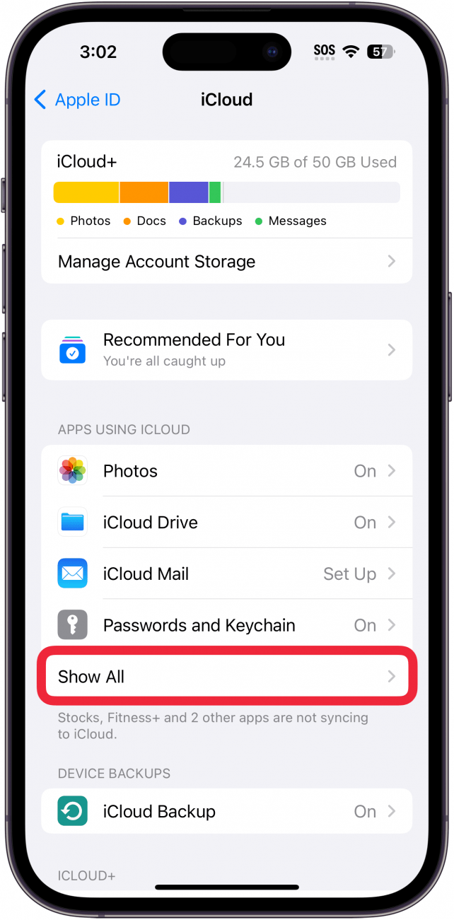 如果您有可用的存储空间,这不是导致您的 iPhone 无法下载图片的问题。但是,如果您的存储空间已满,请点击“管理帐户存储空间”并按照以下步骤操作。