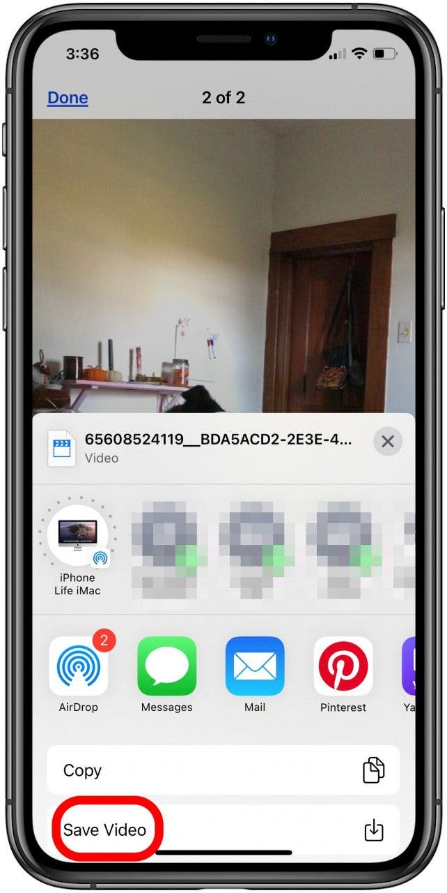 - 将出现一个菜单,其中包含通过消息、电子邮件等进一步共享照片的方法。在这些选项下方,点击保存图像或者保存视频选项。