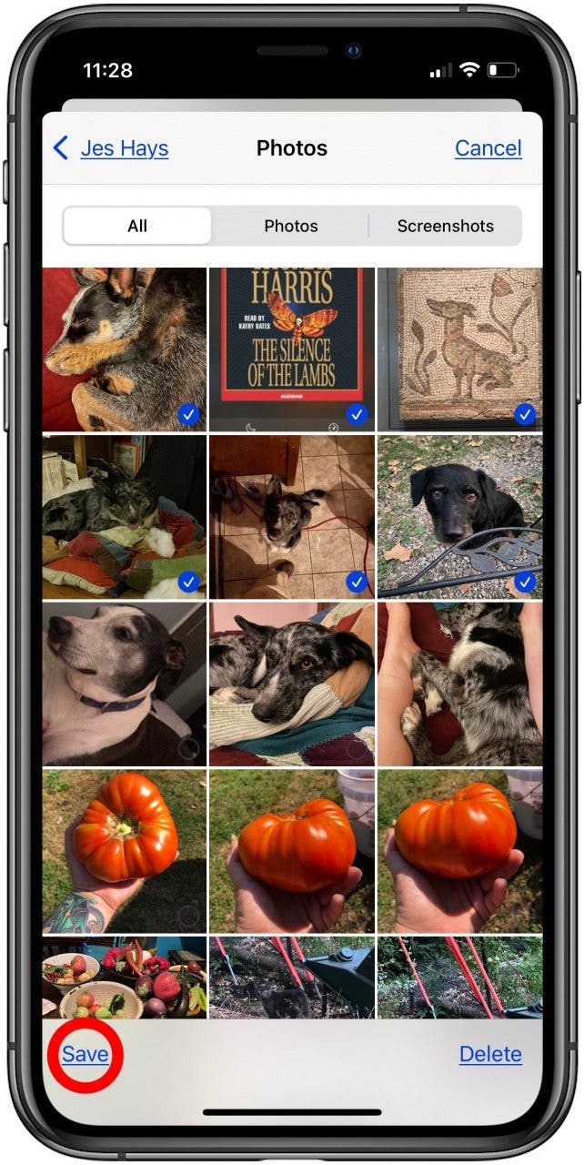 - 将出现选项,包括转发、共享和保存照片,点击节省。