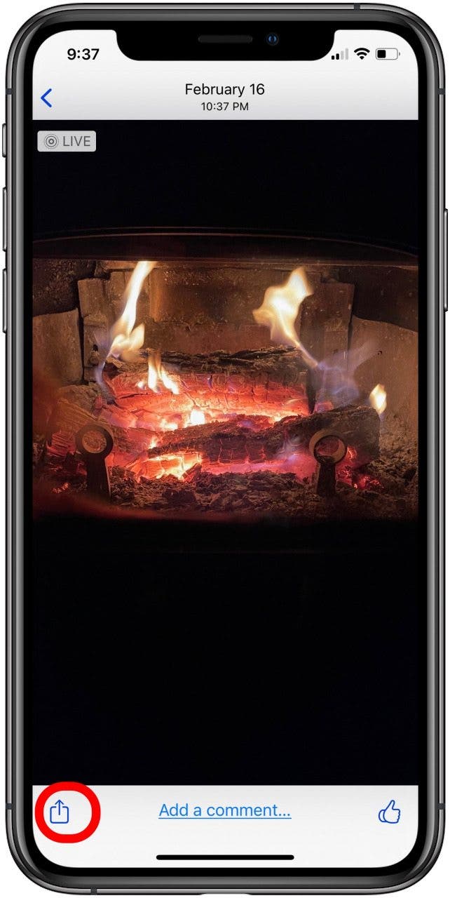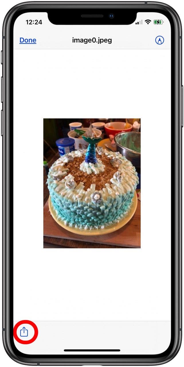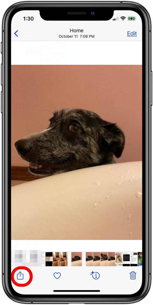 - 要保存照片,请点击分享图标在屏幕的左下角。