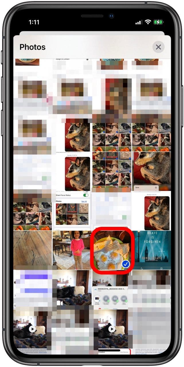 - 点按您要发送的照片或视频。上面会出现一个蓝色圆圈中的白色对勾。