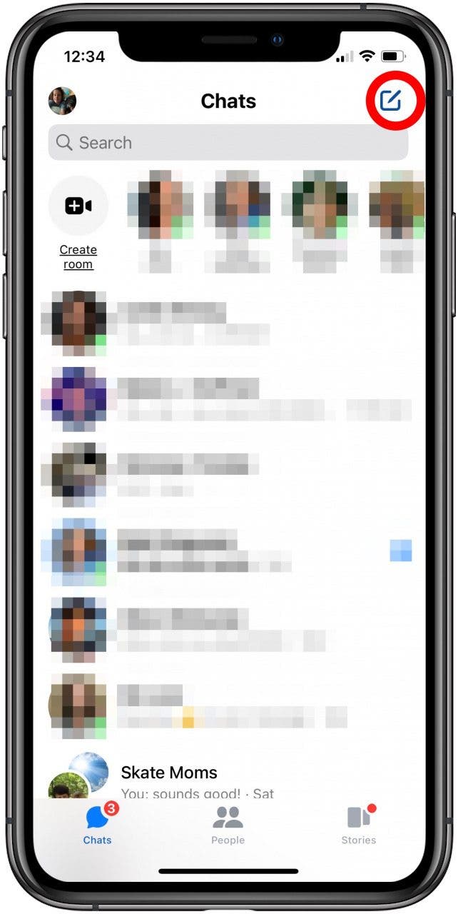 - 打开 Messenger 应用程序并点击新消息图标在显示屏的右上角。