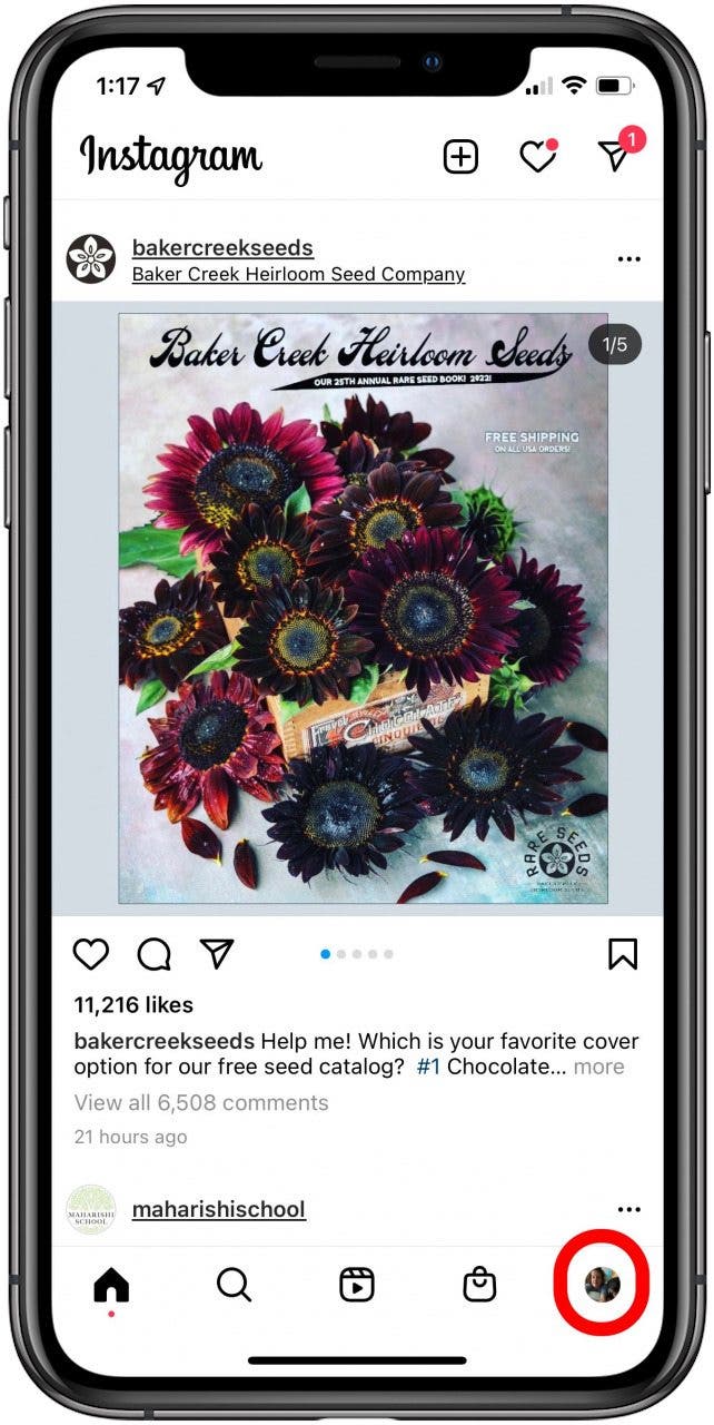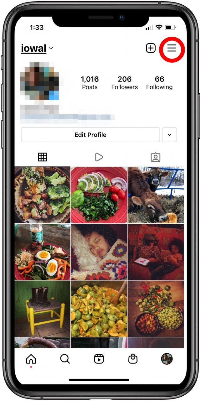 - 返回您的个人资料页面并点击“汉堡包图标”。
