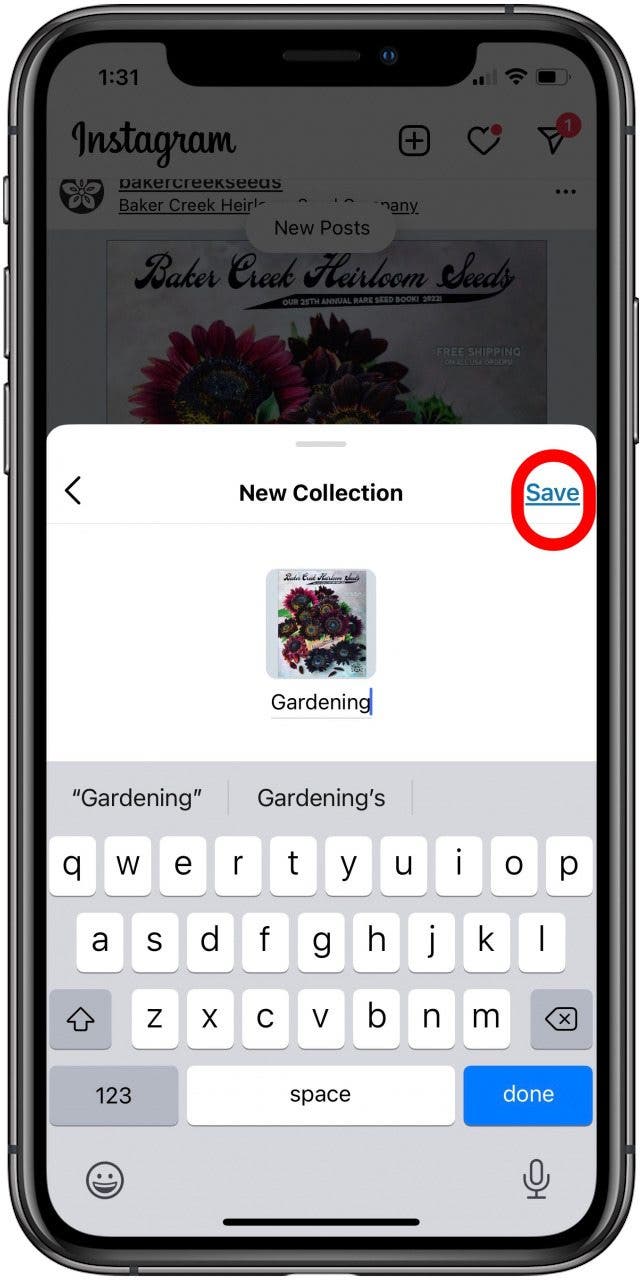 - 选择您已创建的集合,或点击加号创建此图像并将其添加到新集合中。轻敲节省。