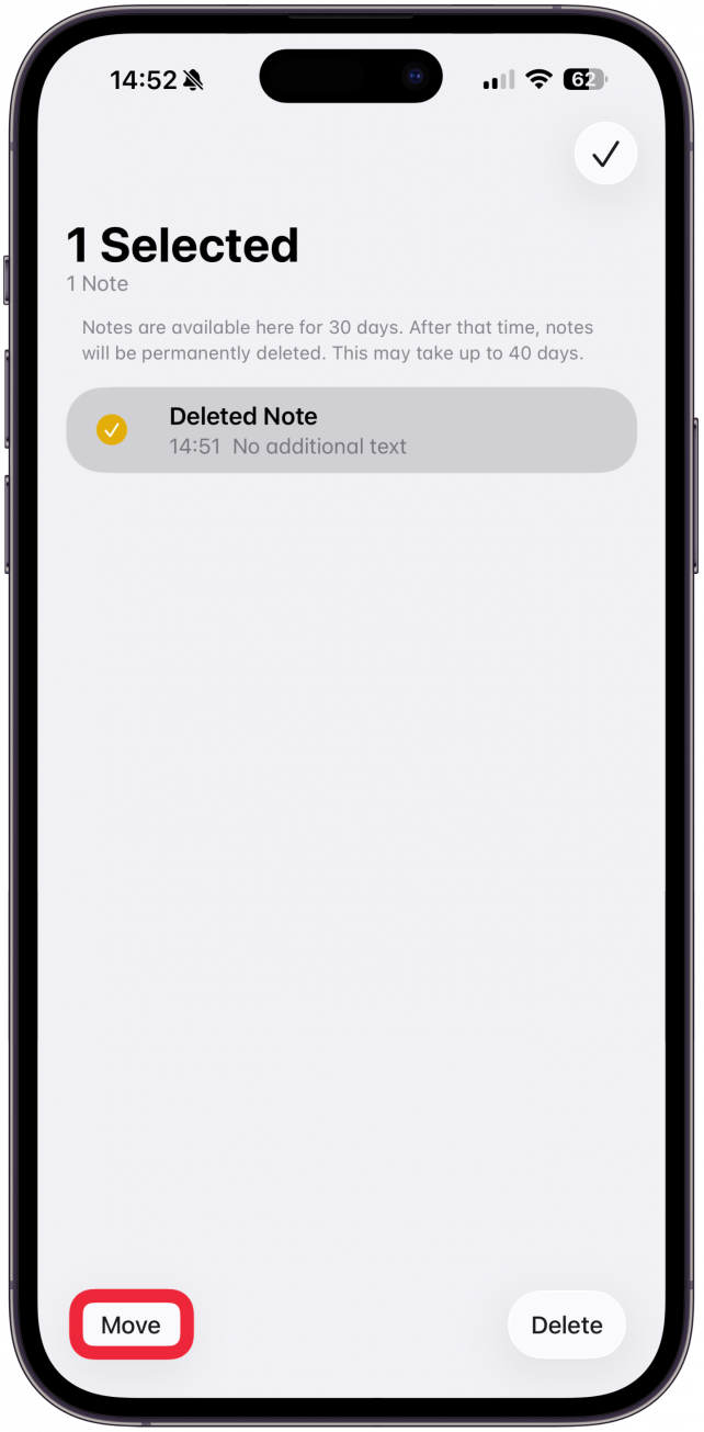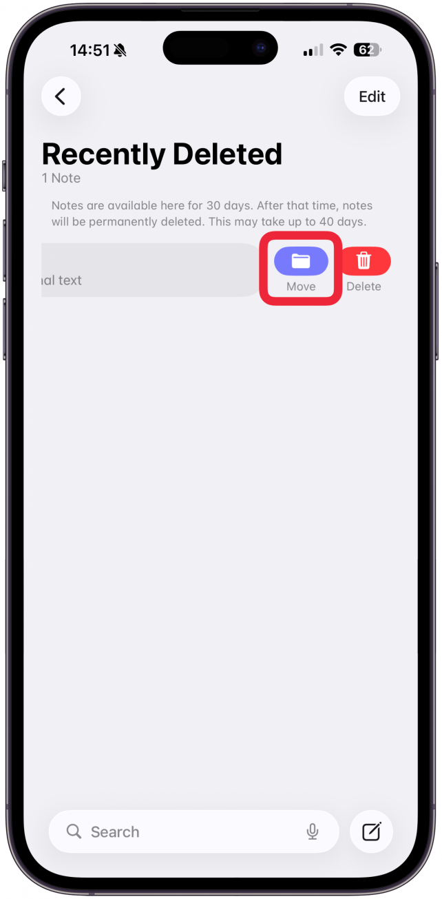 这就是在所有型号的iPhone上恢复已删除笔记的方法!最近删除的笔记会存储 30 天,之后将被完全删除。如果您在此文件夹中没有看到您要查找的笔记,则该笔记很可能已永久丢失。