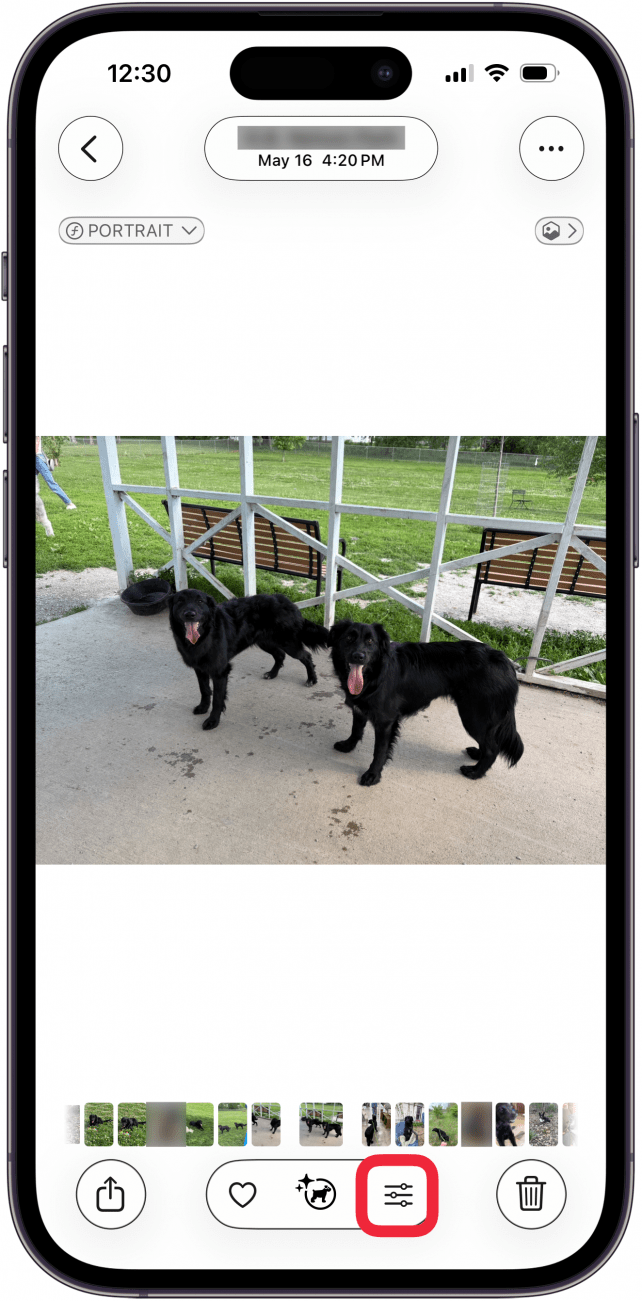 - 在“照片”应用中打开一张照片,然后选择编辑按钮。
