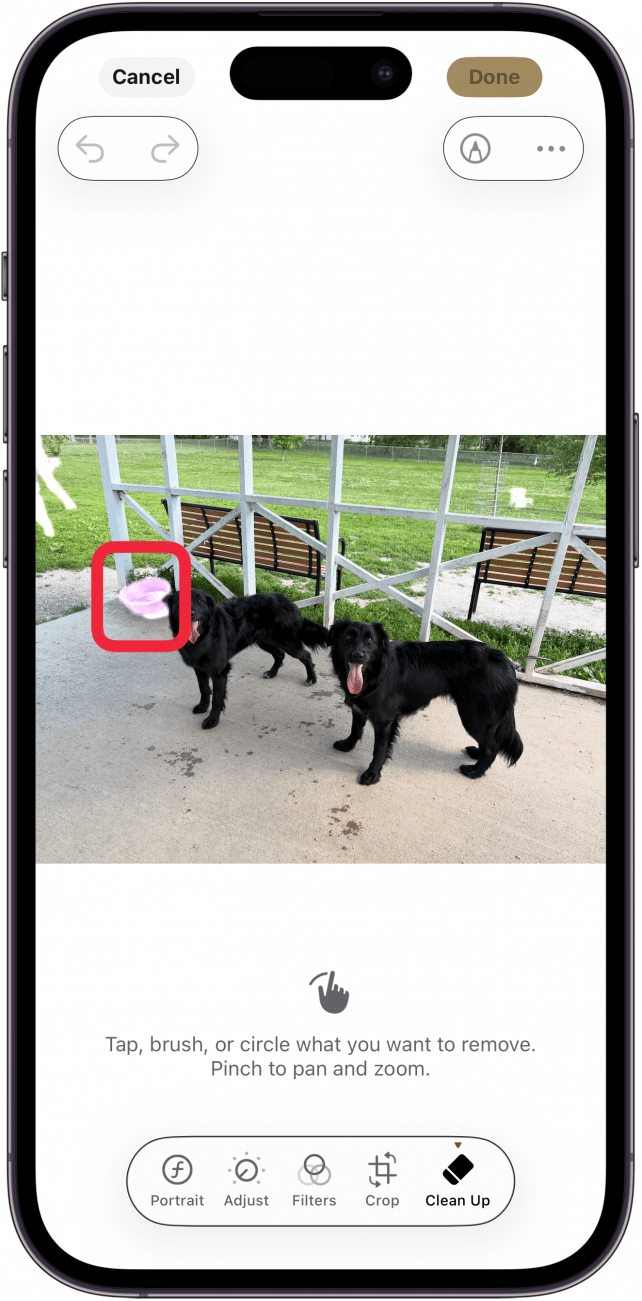 - 如果 Apple Intelligence 没有检测到您要删除的对象,您可以用手指在其上乱写乱画,AI 将尽力删除该对象。