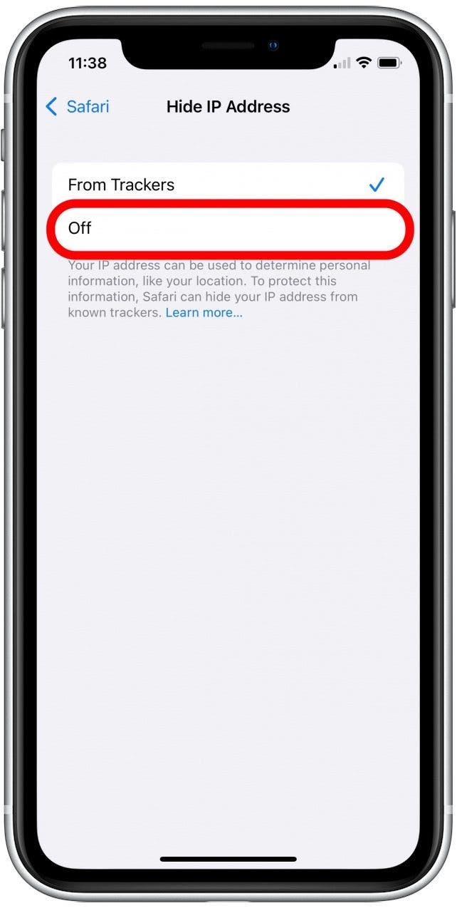 如何在 Safari 浏览时禁用隐藏 IP 地址