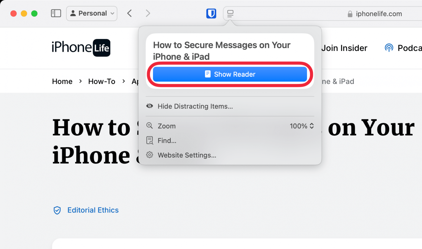 - 使用 Safari 浏览器上的阅读器消除网站上不需要的广告、侧边栏和其他分散注意力的小部件。