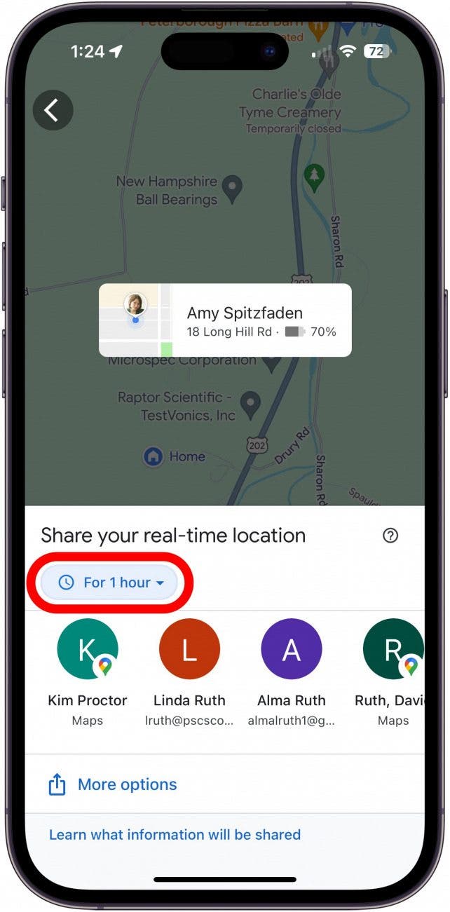 Google 地图是一种将您的位置无限期地从 iPhone 共享到 Android 设备的简单方法。但是,要使其真正无限期,您必须将位置共享到电子邮件地址。如果您通过“消息”将其分享给您的一位联系人,则您最多将有一天的时间,直到该功能关闭为止。