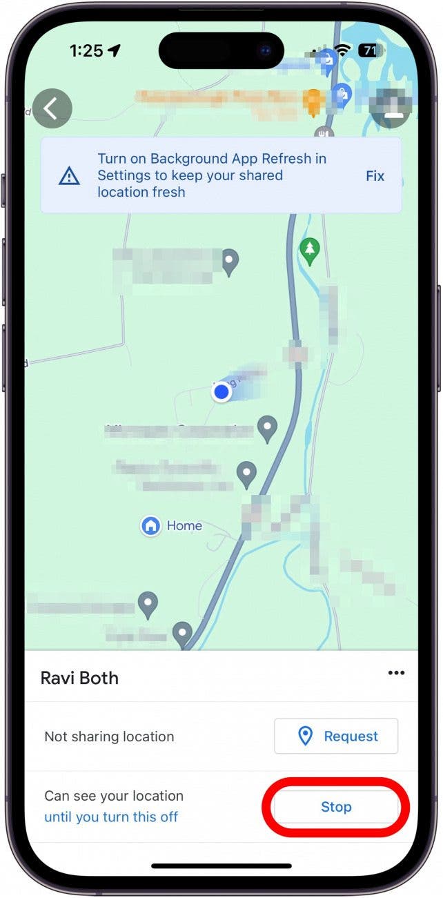 - 查看与您共享位置的联系人时,您可以点按停止旁边的一个停止共享。