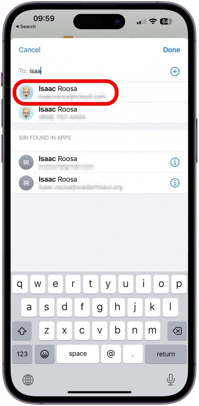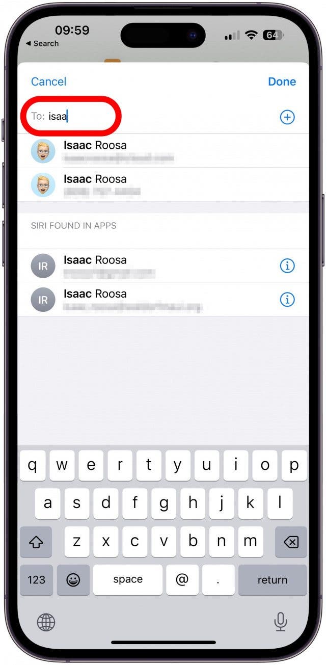 - 输入联系人的姓名、电话号码或电子邮件地址。