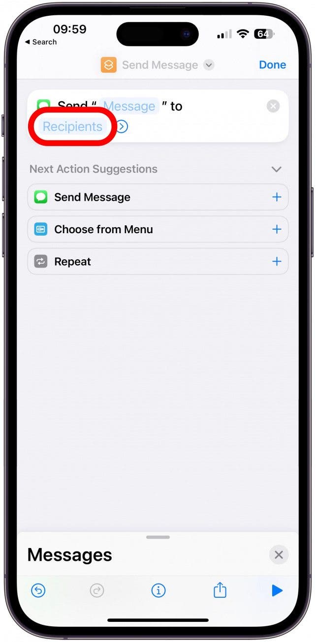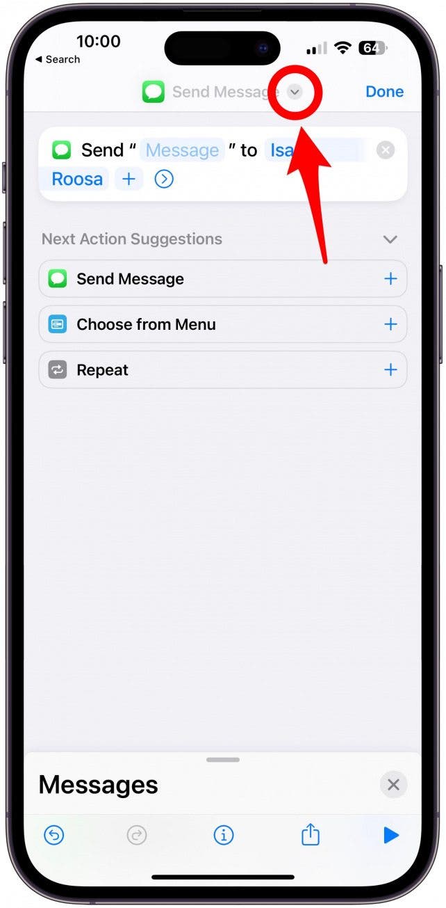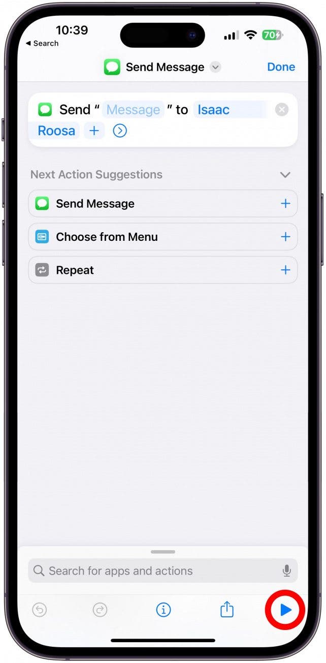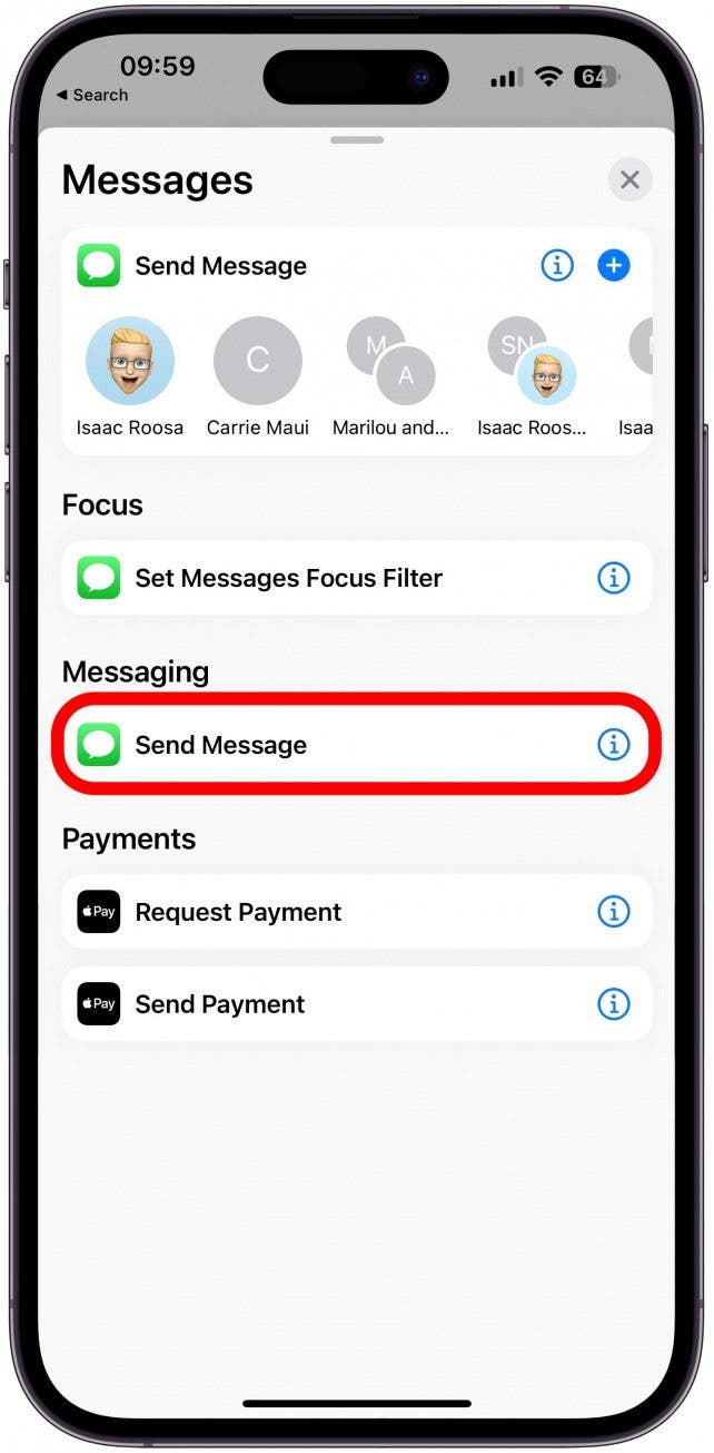 - 选择一个操作。对于本示例,我将点击发送消息。