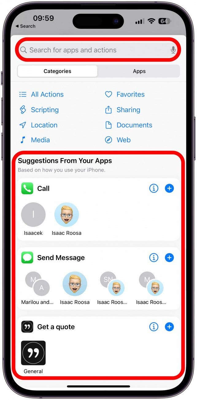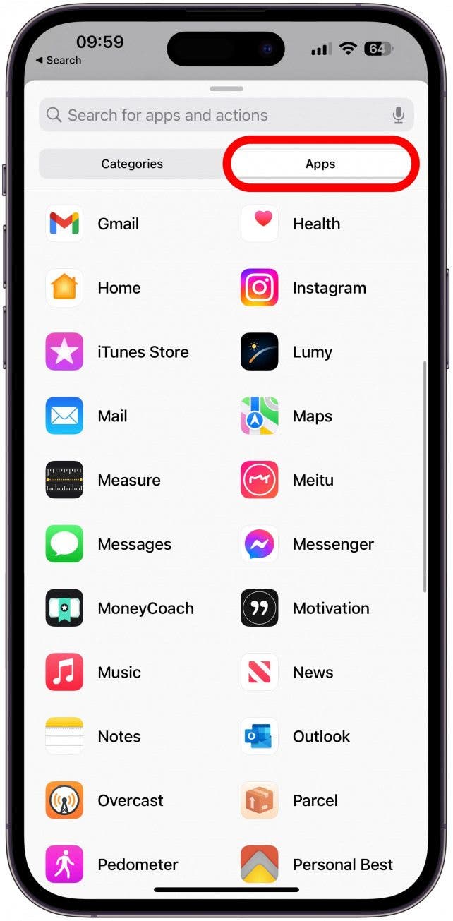 - 您将在此处看到一些建议,或者您可以使用搜索栏搜索应用程序或操作。