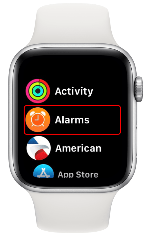 - 您可以直接从 Apple Watch 设置闹钟,方法是转至“闹钟”,然后选择一个预制闹钟,也可以通过点按“添加闹钟”来创建新闹钟。