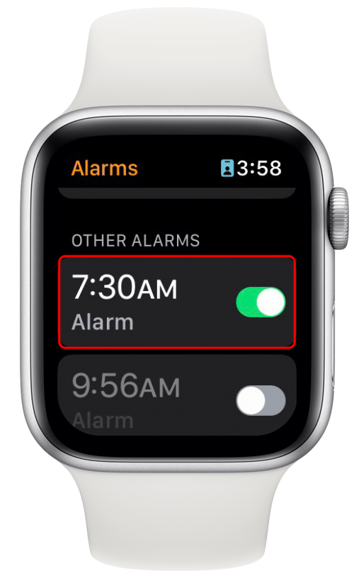 - 您可以通过打开预制闹钟来选择它。启用后滑块将呈绿色。
