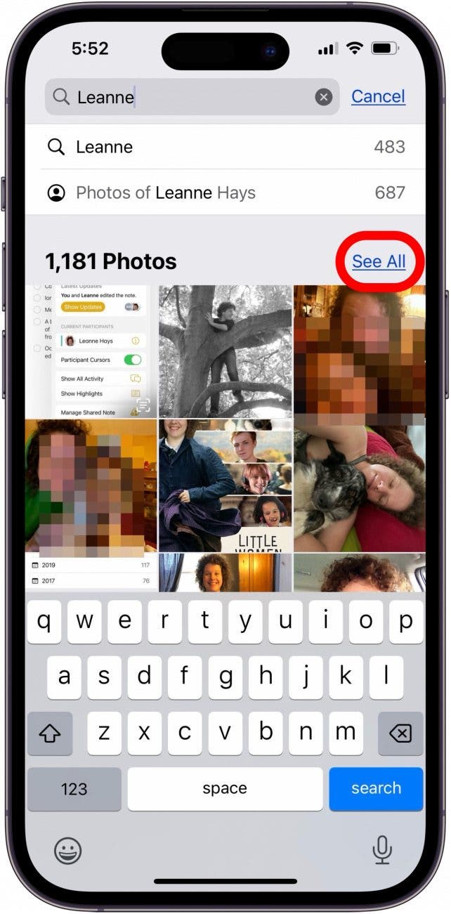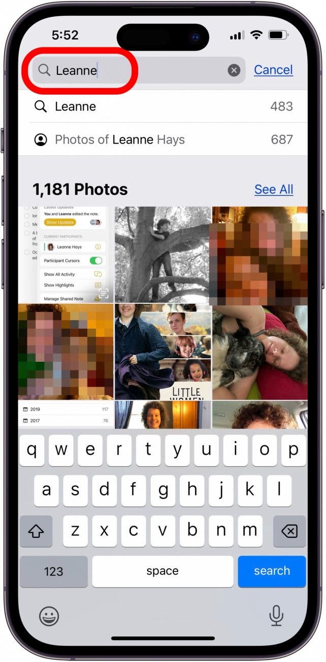 - 点击搜索图标,然后输入要从照片中删除的人员的姓名。对于这个例子,我将使用我自己的名字。
