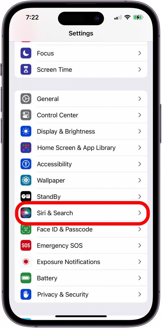 - 打开设置应用程序,然后点击Siri 和搜索。