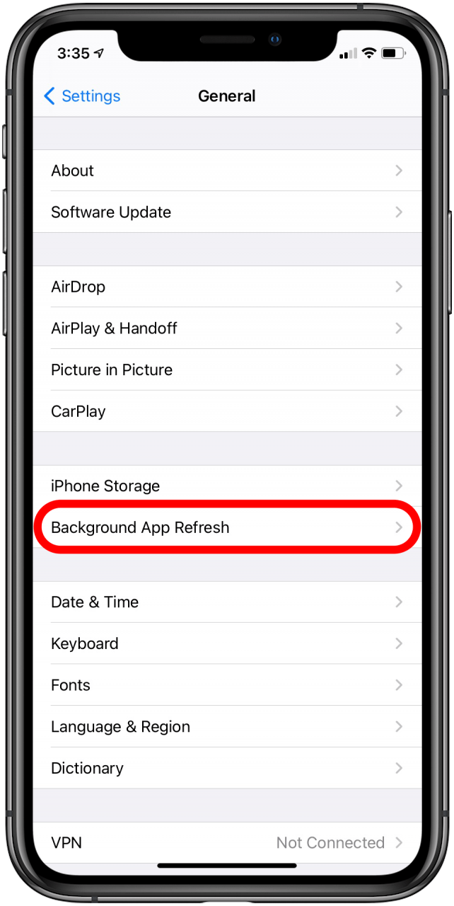 - 轻敲后台应用程序刷新再次在出现的菜单中。