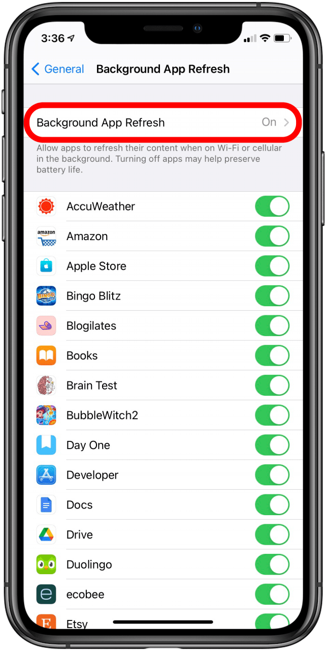 这可以为您的 iPhone 节省大量电量。如果您没有遇到后台应用程序刷新导致电池耗尽的问题,但注意到该功能正在消耗数据,您可以将后台应用程序刷新设置为仅在设备处于运行状态时才发生。如果关闭后台应用程序刷新未能节省足够的电池寿命,那么还有一种大多数人不知道的节省 iPhone 电池电量的方法。