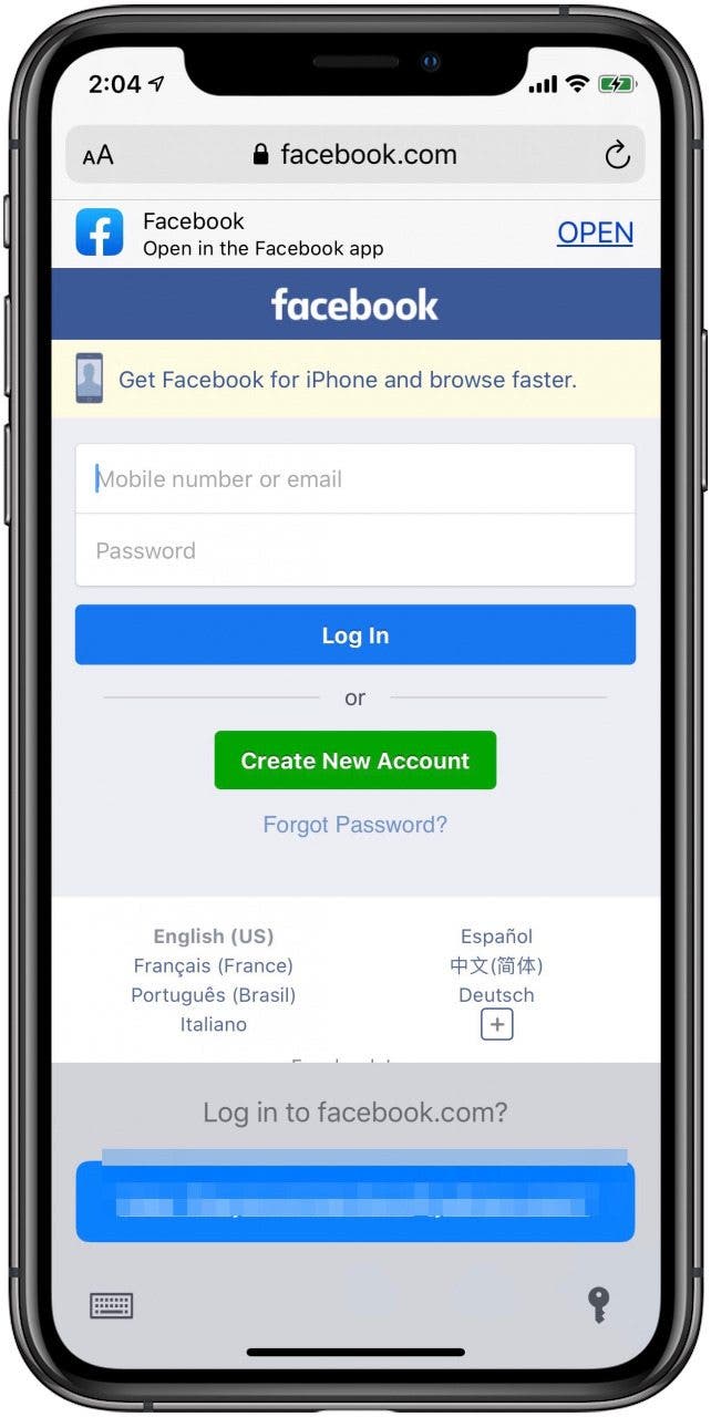- 打开Safari 应用程序,然后转到脸书网并登录。