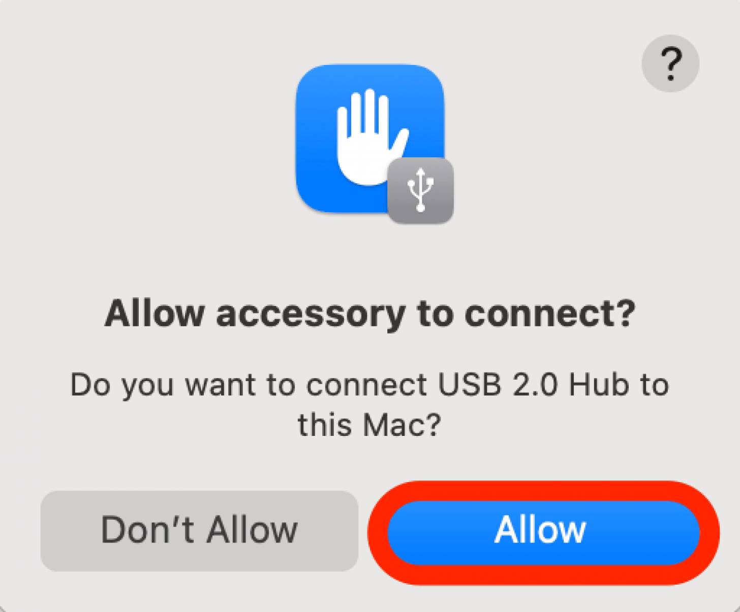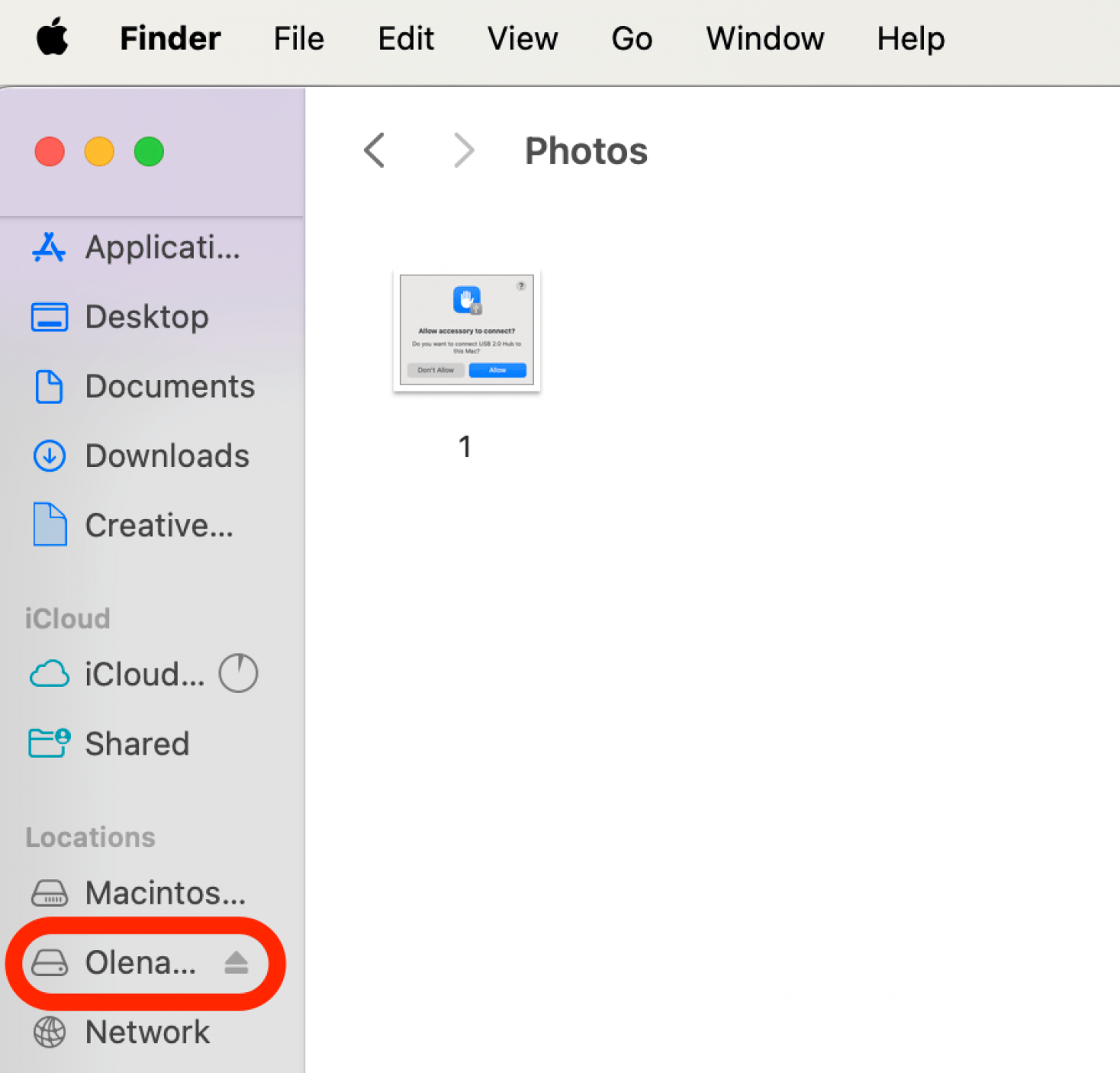 - 将外部硬盘驱动器连接到 Mac。您可能需要允许对 Mac 的硬盘访问。