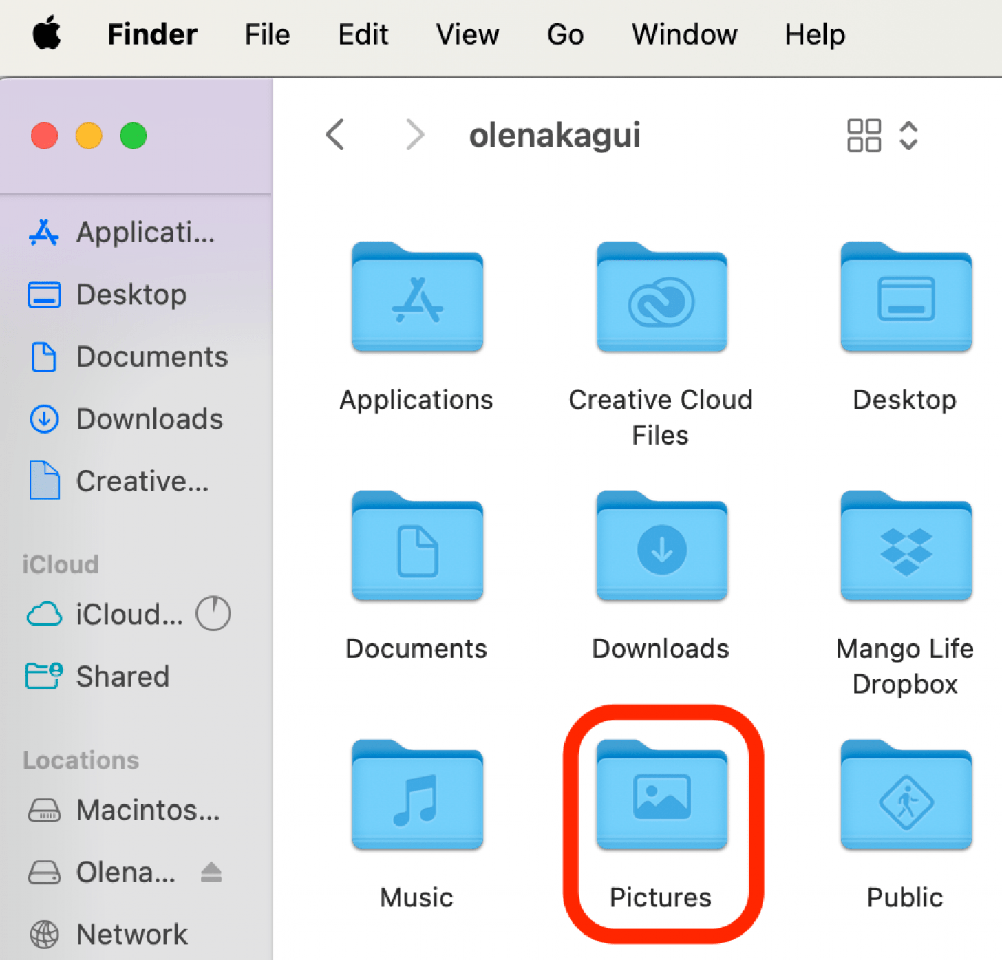 - 您的照片库应该位于图片文件夹,里面主文件夹。如果您没有看到“图片”文件夹,在继续步骤 5 之前请执行以下步骤。