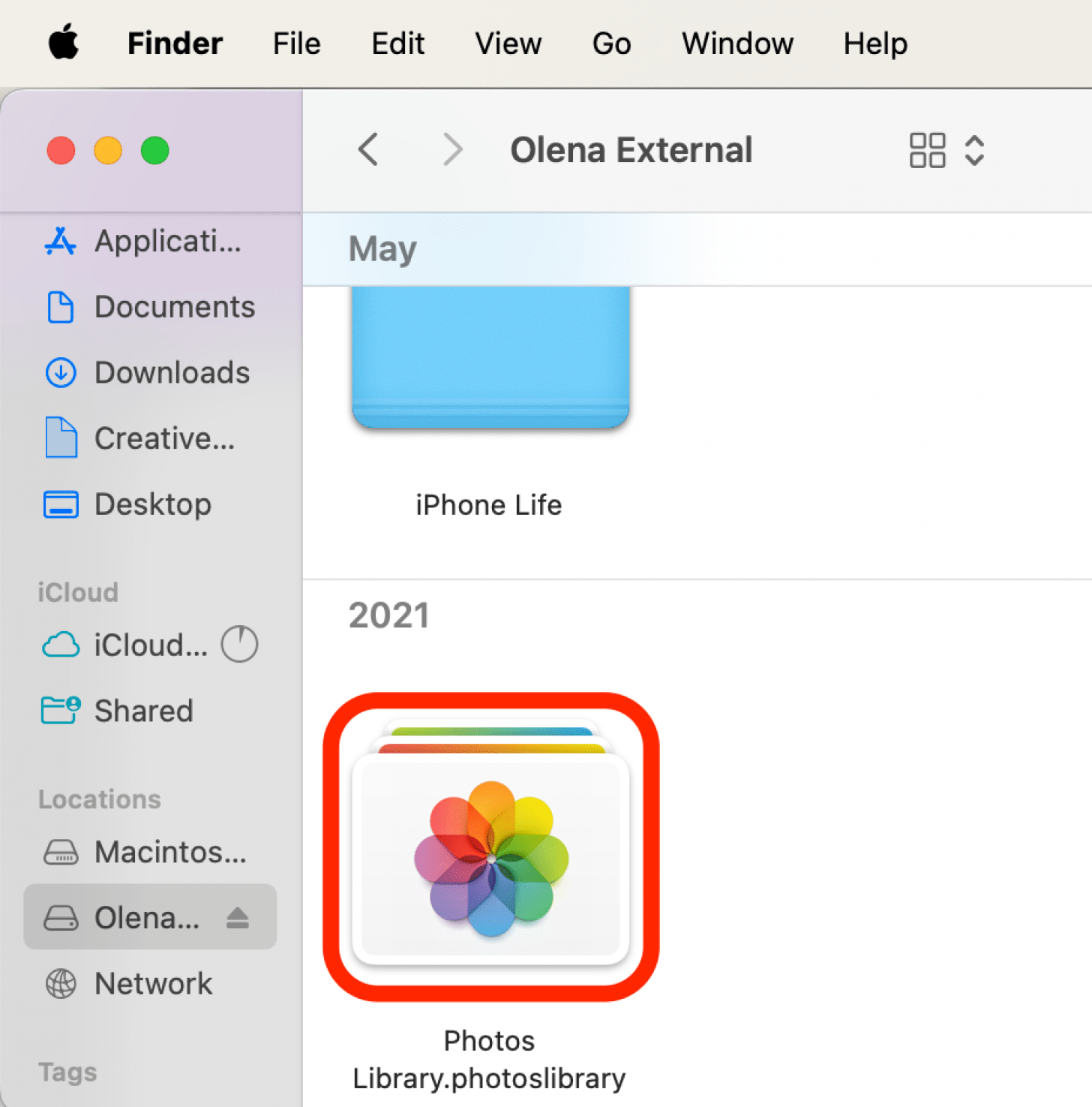 - 完成此操作后,双击照片库外部硬盘驱动器中,以确保所有内容均已移动。