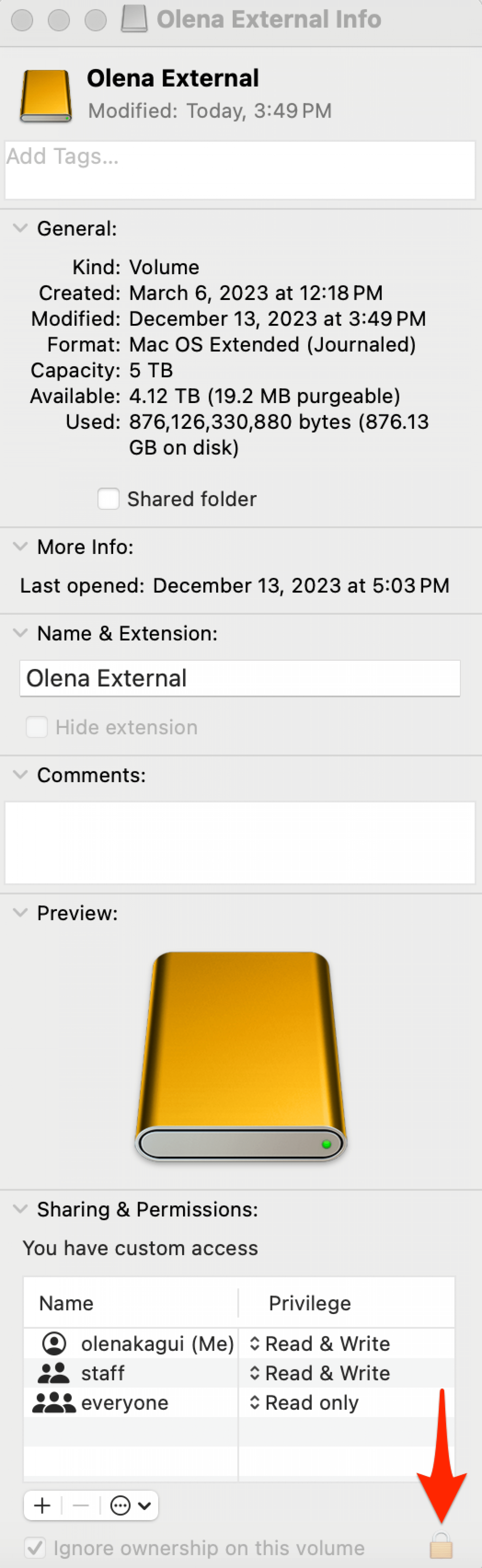 如果没有锁定图标,您可能需要格式化外部硬盘驱动器,或者该驱动器可能已用于尚未删除的 Time Machine 备份。如果您的照片库存在其他权限问题,Apple 有一个照片库修复工具这可能对你有帮助。
