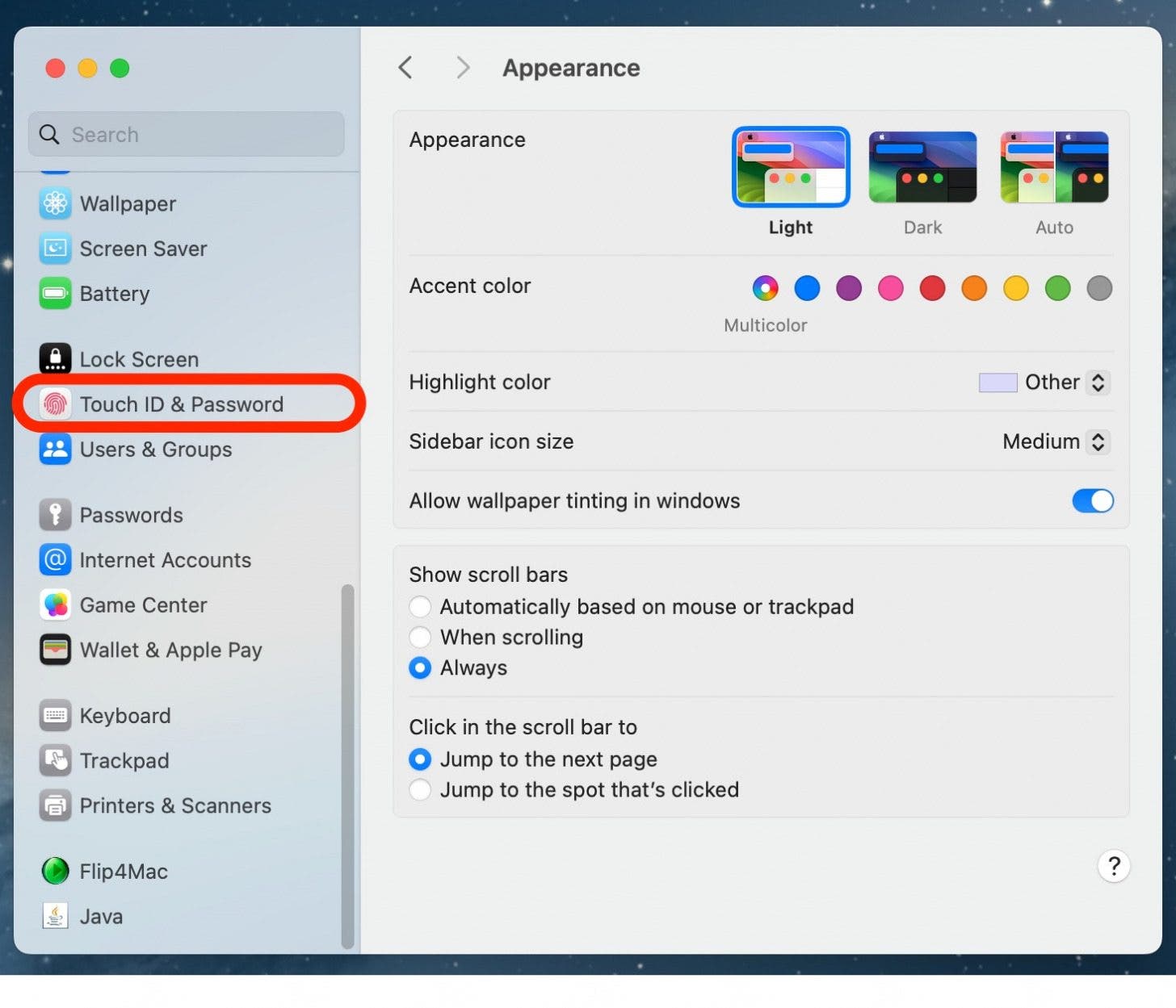 - 点击触摸 ID 和密码。