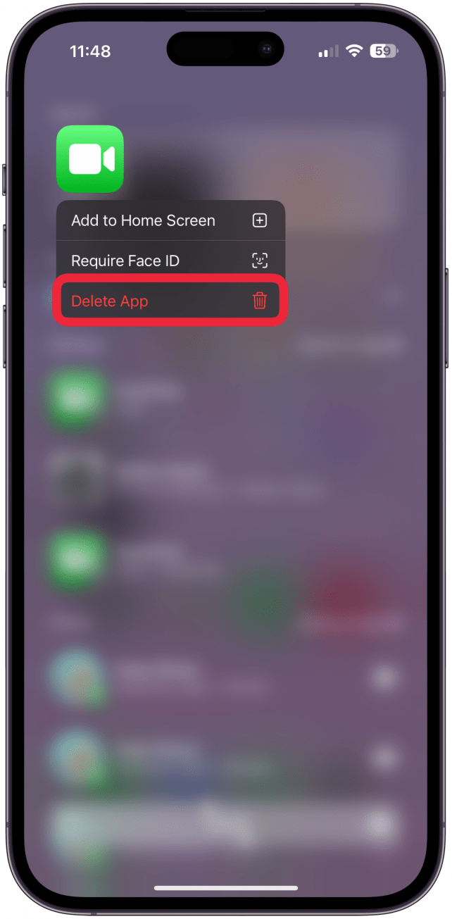 6. 在您的 iPhone 上删除并重新安装 FaceTime。