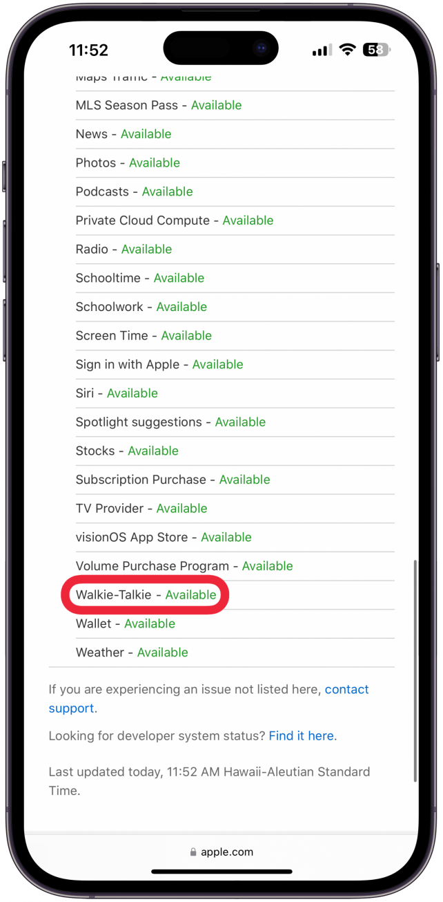 有时,问题出在苹果这边而不是你身上。访问www.apple.com/support/systemstatus查明 FaceTime 或对讲机服务是否存在问题。