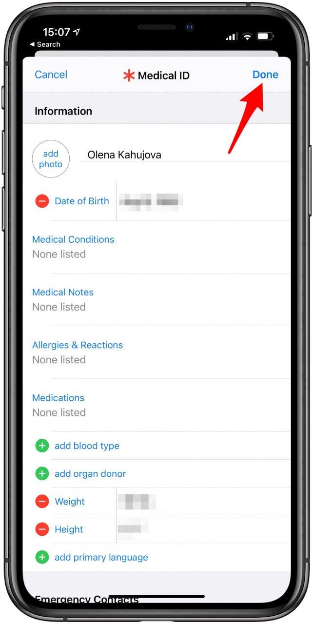 确保锁定时显示已打开。考虑打开紧急呼叫期间共享,以使您的 iPhone 和 Apple Watch 能够与急救人员共享您的医疗 ID。