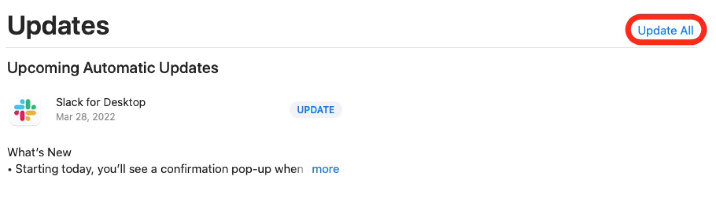 - 如果您有一项更新,请单击更新在应用程序名称旁边。如果您有多个,请单击全部更新。