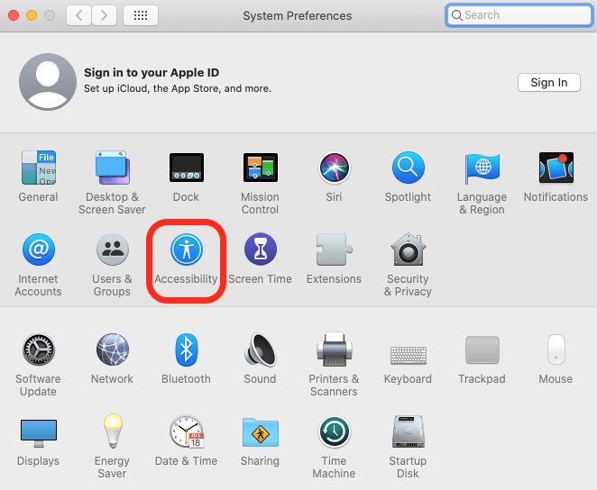 - 单击苹果菜单, 点击系统偏好设置,然后单击无障碍。